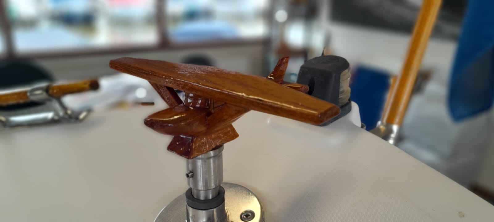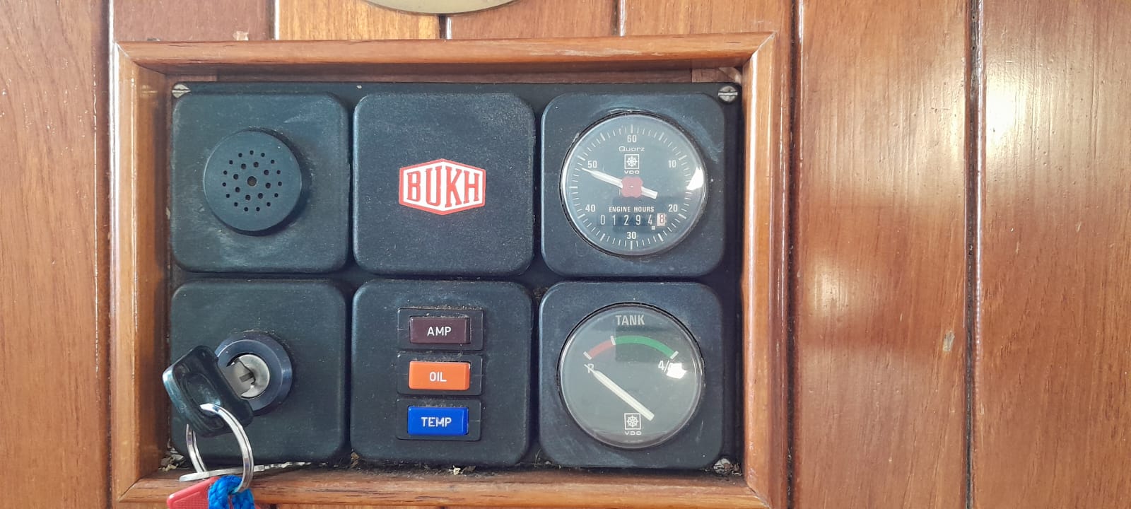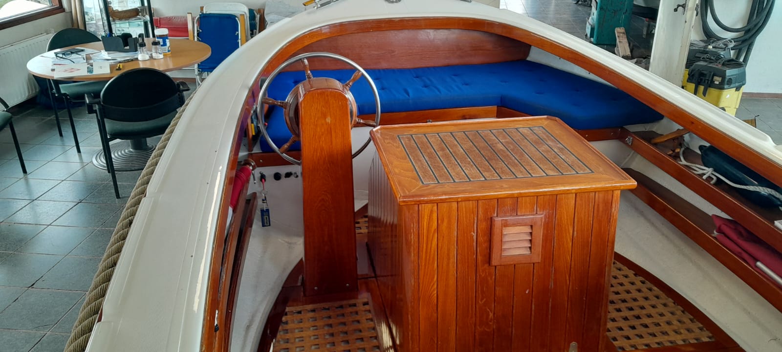 Buiskap met aanritsbaar achterzeil, stuurkolom, houten motorkast, houten kuiplijsten, kabelaring, teakvloer, zonnedek met kussenset, plateau met zwemtrap, nivometer en urenteller, navigatie verlichting, lenspomp.